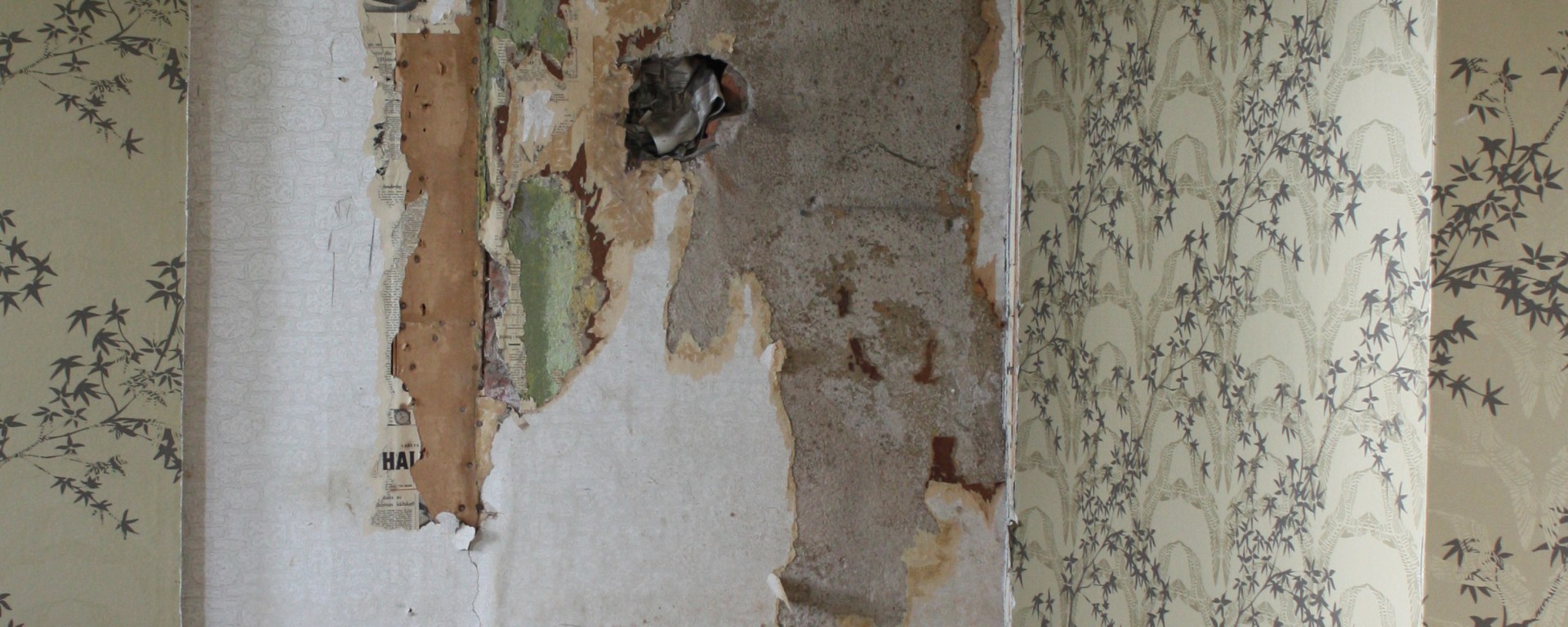 För väldigt många år sedan stod någon och klistrade upp tidningspapper på Solhagas murstock. Så skönt att slippa elda, äntligen oljepanna, jojomen serru. Ett antal år senare står jag och pillar loss olika lager av tid för att få det gamla tillbaka. I september 2009 ska vi få en gammal rund kamin med krusiduller.