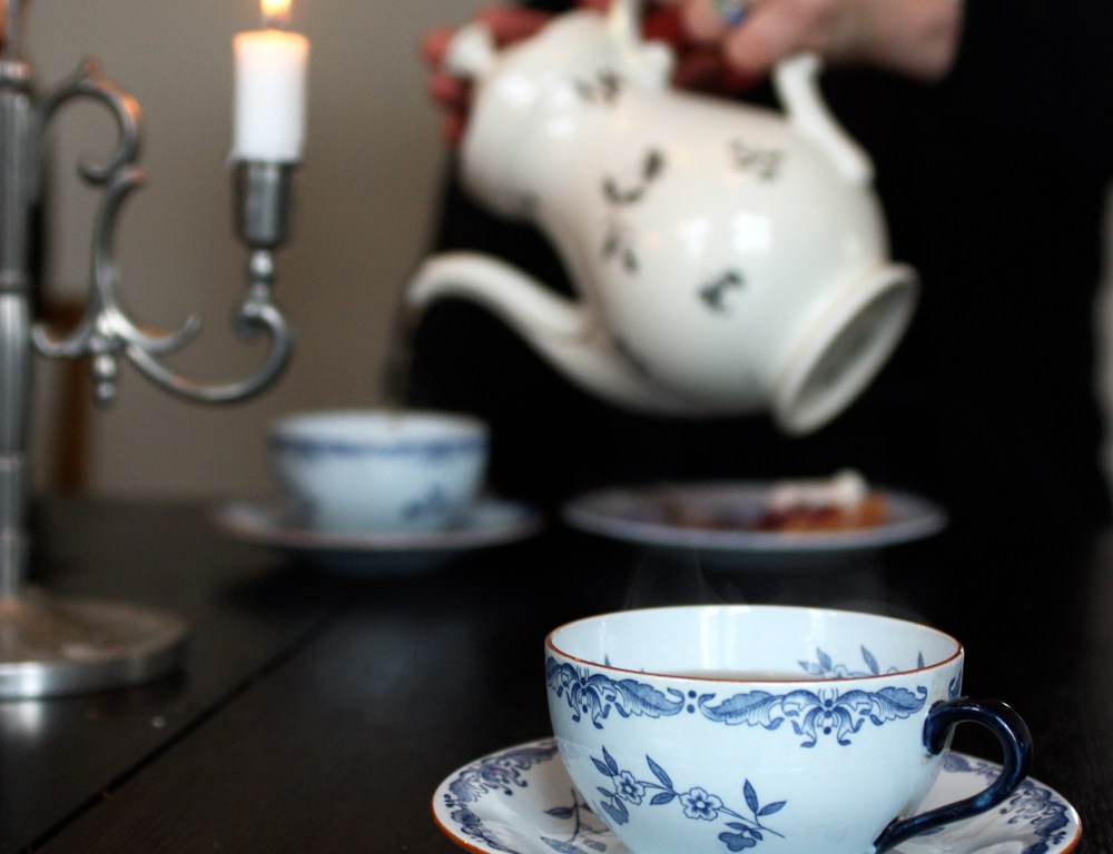 Men utan de små fina pauserna hade vi aldrig fixat det. Jag och mamma gick till Antikstället och köpte lite möbler till barnens rum. Det var strömavbrott och vi fick låna en ficklampa. Just som vi skulle gå föll ljuskäglan på några tekoppar från Rörstrand och jag föll pladask. När vi kom hem invigde vi dem. Och så hittade jag resterna av den här i frysen.