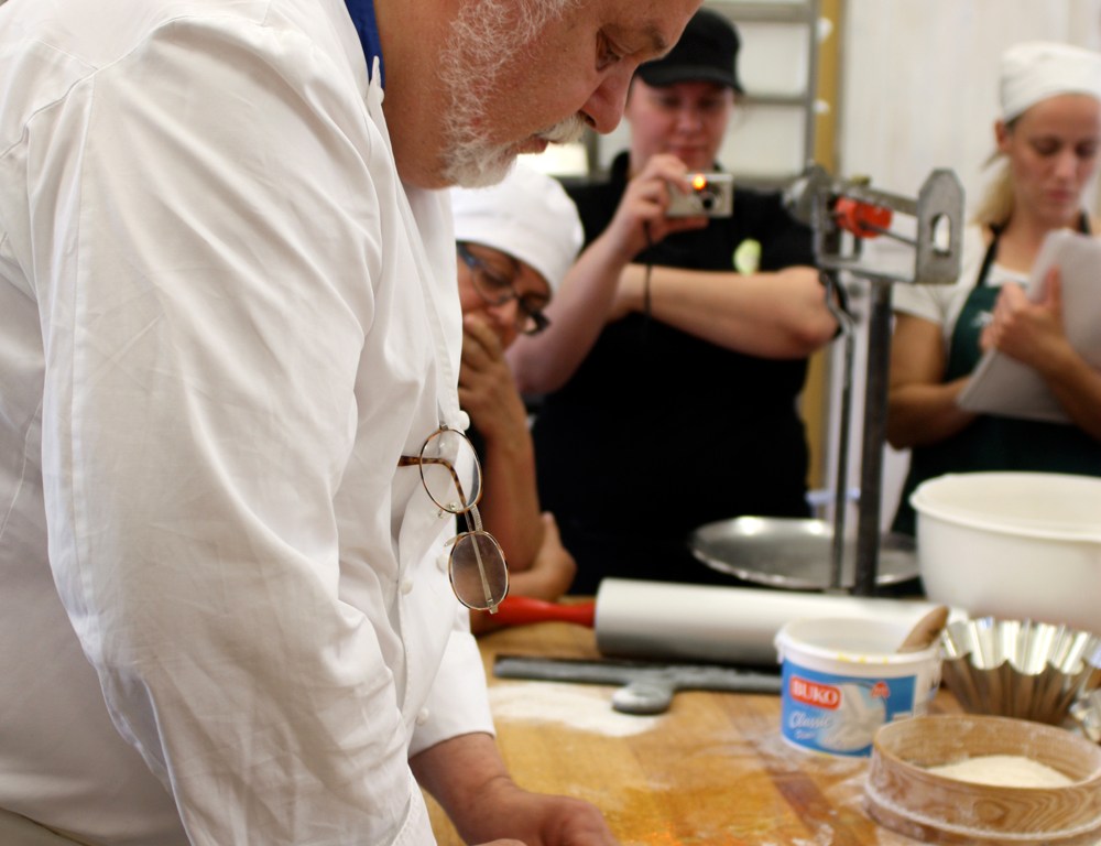 Det är intensivt och rörigt på kursen, svårt med många processer på liten yta. Men man får göra det bästa av situationen och vara på hugget om man vill lära sig något. Och det vill man. Man får inte heller vara rädd för att göra bort sig. Jan Hedh skräder inte orden när något går fel, det var på gränsen till att jag fick gå till skamvrån efter att ha rullat osäljbara småfranskor. Men efter lite instruktioner och nya försök fick jag bättre kläm på det. Tur att jag har så otroligt fina bagarkompisar på kursen, vi stöttar varandra när självförtroendet får däng. Och Jan är faktiskt också väldigt positiv och snäll när det går bra, jag fick fint beröm för både skådebrödshjärta och tolvfläta.