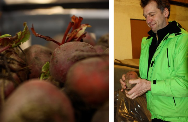 Dagen fortsatte med besök hos Mikael JidenholmUgglarps Grönt. Honom kan man sitta och prata med hur länge som helst. Idag har vi planerat lite vilka av hans råvaror vi kan använda i brödet, och man vet aldrig vad det kan leda till. Tanken är att vi alltid ska ha ett veckans bröd, där vi provar lite nya saker. Bli inte förvånade om grankåda, havsvatten eller avkok på vissna hallonbuskar dyker upp på ingredienslistan… Till att börja med fick vi med oss olika sorters betor som vi ska experimentera med.