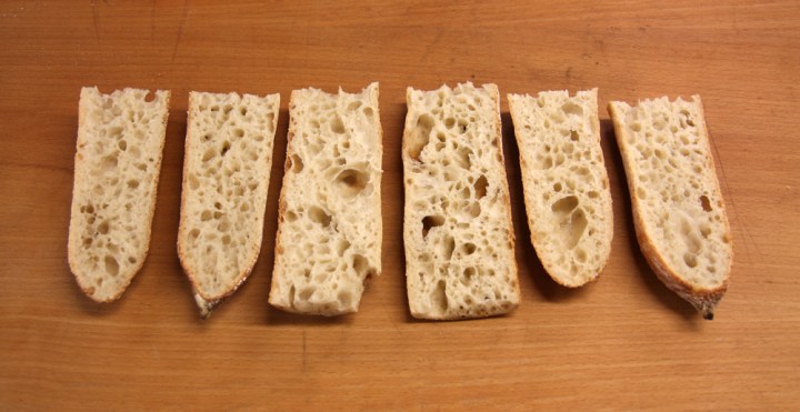 Sätt ugnen på 275°, gärna med baksten eller en plåt inne. Vänd upp bröden på en mjölad träskiva eller brödspade med hjälp av en spackelspade så att de inte fastnar i plåten. Skjutsa in dem på den varma stenen/plåten, spruta in vatten och sänk värmen till 240°. Baka i 35–40 minuter. Titta in i ugnen och se hur fint de spricker.