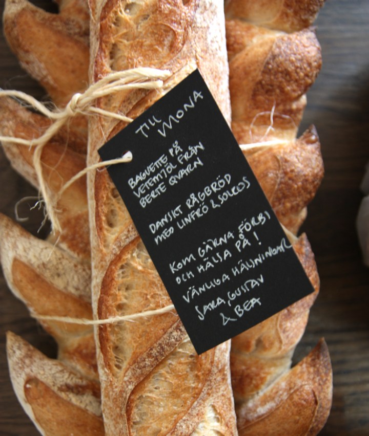 Mer om hur man gör sina egna presentbröd kommer snart i GöteborgsPostens lördagsbilaga Två Dagar, nu i veckan var Lisa Lemke och Magnus Carlsson här och fotade baguette-bukett och några andra påhitt.