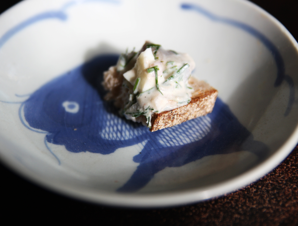Lägg på en röra av allting från igår, typ gräddfil, dill, gräslök, tärnade ägg, matjessill, salt och peppar.