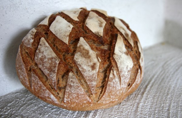 Värm ugnen till 250°. Vänd upp bröden på en brödspade eller liknande. Skär fyra raka snitt, och sedan fyra på snedden så att det blir ett romb-mönster. Sätt in bröden och spruta in vatten, sänk till 225° och grädda i 30–35 minuter, eller till en innertemperatur på 98 grader.