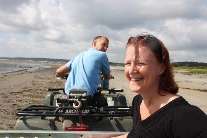 Efter jordgubbarna bar det iväg på ett skumpigt flak neråt stranden, där Mikael visade oss allehanda ätbara grödor.