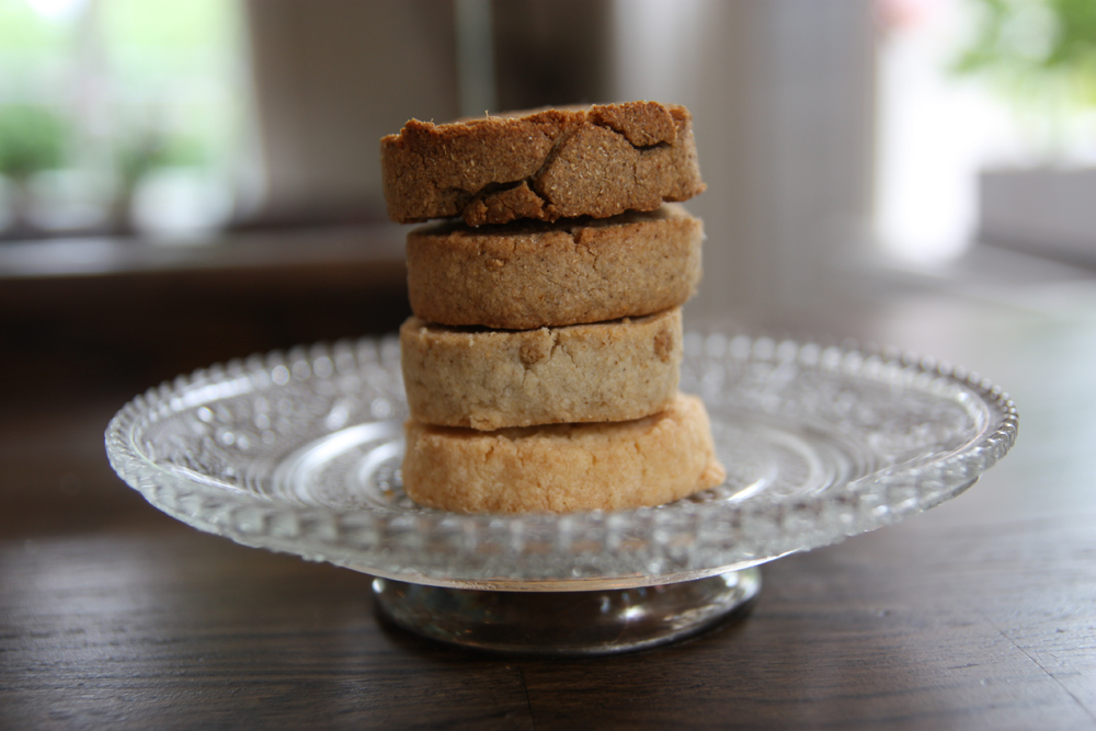 Mjöl på torkad kvickrot användes under kriget som ersättning för vetemjöl i konditorivaror. Därför tyckte jag att det kunder vara passande att göra en ren och enkel mördegskaka med olika halt av kvickrotsmjölet som Mikael Jidenholm på Ugglarps Grönt hade försett oss med. Själva mjölet hade en lätt smak av fisk, så mina förhoppningar var inte alltför höga.