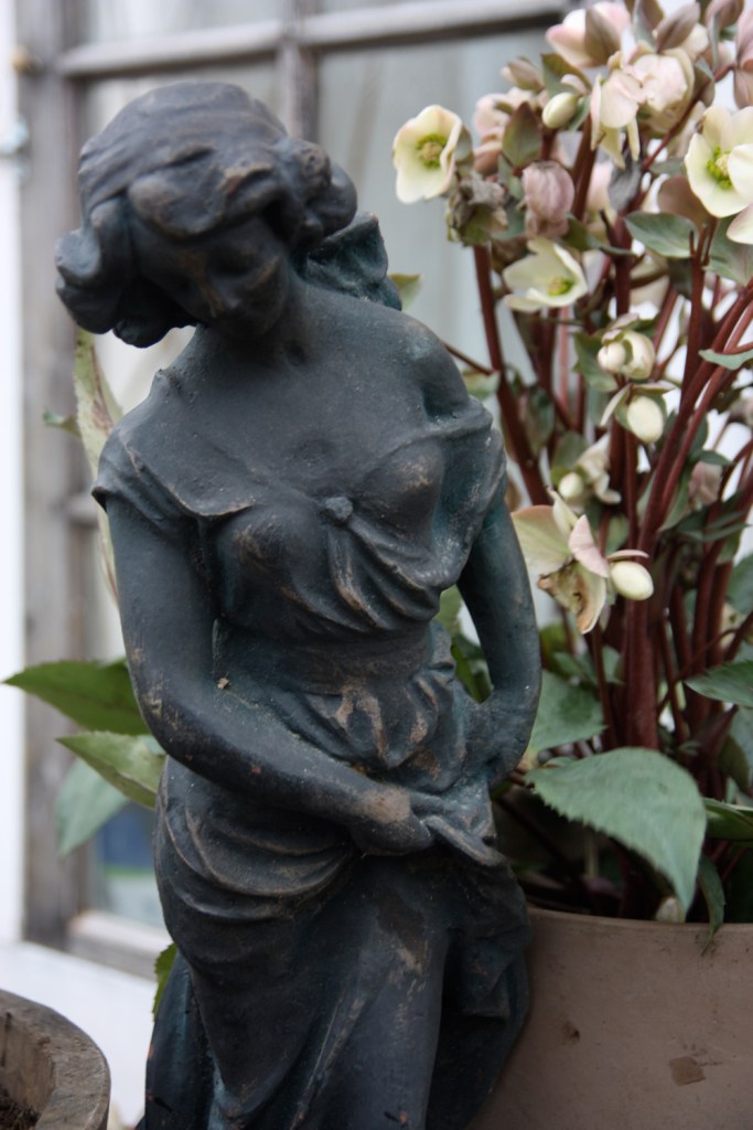 Vi har fått lite ordning på trädgården och som vanligt vid den här tiden på året kan jag inte låta bli att köpa julrosor i stället för påskliljor. Och så bara älskar jag den lilla bronsdamen som jag ropade hem på Hebergs Auktioner förra helgen.