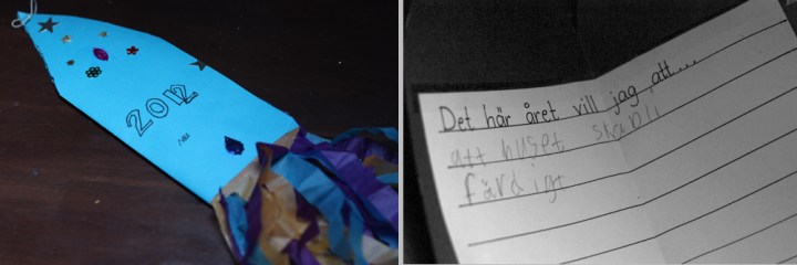 Mitt i all denna aktivitet hittar jag ett pyssel som Max gjorde i skolan sent förra året. En pappersraket med en nyårsönskan om att huset ska bli färdigt. Detta och en rad andra omständigheter gjorde att jag satte allt annat åt sidan för att kunna uppfylla hans önskan.