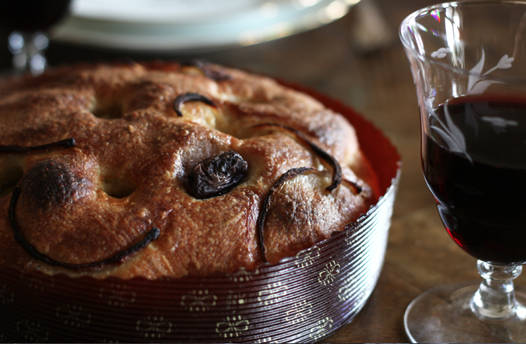 Foccacia med oliver, cheddar, rödlök och rosmarin