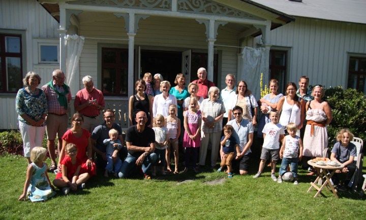 Därför hade vi ett alldeles speciellt kalas i lördags, då Karin som bodde här i många år skulle ha fyllt 98 år. Vi bjöd hit hennes barn Ingegärd, Kerstin och Bo-Gunnar. Samt deras 13 kusiner med familjer, som också tillbringat mycket tid här. Och inte minst Elisabeth, som är den enda av Karins fyra systrar som fortfarande är i livet. Nu när vi är klara med renoveringen ville vi låta dem gå runt och se hur det har blivit här på Solhaga, och visa de föremål vi har hittat under golv, bakom väggar och i glömda vrår.