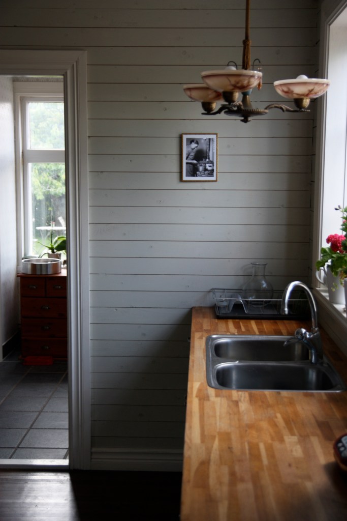 Och nu hänger fotot av Alma precis där hon stod och gjorde flottyrringarna. Något recept finns inte kvar, men eftersom vi har hittat gamla exemplar av Hemmets Journal under plastmattorna här i huset, så man kan gissa att hon klippte ut ett och annat därifrån.