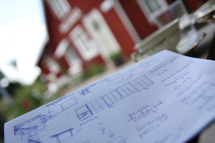Hela mitt huvud är sprängfullt av planer och drömmar. En av dem omfattar ett bygglov, stora skjutdörrar med spröjsat glas, eld i kaminen, varm valrhona choklad, fårskinsfällar och gnistrande ljus. Kanske färdigt till sommaren, absolut senast till julen 2013.