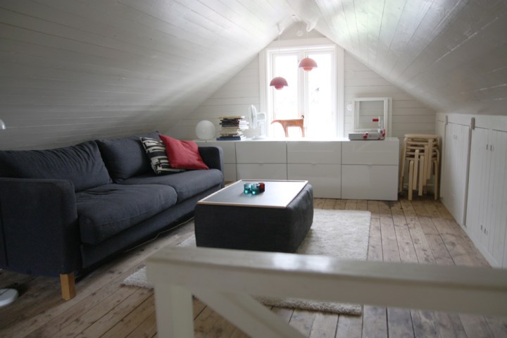 Tills vidare har vi bättrat på de lokaler som redan finns i verkligheten, och gnuggat bageriet rent in i minsta vrå. I dag var Calle från Anticimex här på inspektion och vi fick beröm för vår fina ordning.Personalrummet på vinden är numera ett trevligt ställe och inte längre en avstjälpningsplats för allsköns bakformar och annat bageribjäfs i en enda röra. Här uppe ska vi sätta oss om en liten stund och planera allt gott vi ska baka i höst.