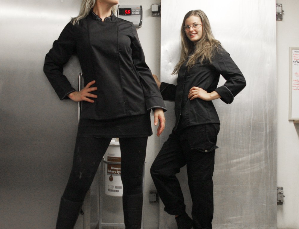 Som bagarbloggerska kan man ju inte vara sämre än Blondinbella, Underbara Clara och alla de andra tjejerna. I går fick vi paket med inte mindre än sex olika modeller av svarta kockrockar för damer. Vi vill ha insvängda varianter, det finns ingen anledning att dölja sin fina figur i ett tält, menar jag. Moa och jag kastade av oss de mjöliga bagartrasorna, svidade om och slängde upp kameran på en stickvagn för att kunna ta bilder med självutlösaren. Två av rockarna dissade vi direkt, här kommer de andra fyra.