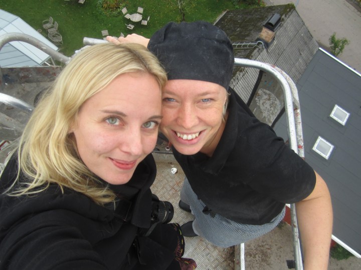 No fear! Självporträtt 17 meter upp i luften, med Annsi som är vår nya inhoppare på Solhaga.