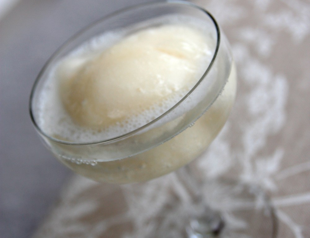 Till efterrätt hällde Lisa flädersaft (fast det gick även bra med torrt mousserande vin) över ”en härlig halländsk sorbet med smak av äppelcider”. Och eftersom hon inte kunde säga rakt ut varifrån den kom heller kan jag med glädje utropa att även den är från Slöinge. Närmare bestämt från SIA Glass. Just deras äppelcidersorbet är verkligen den här sommarens absoluta favoritglass, jag hoppas innerligt att den får stanna i deras sortiment länge.