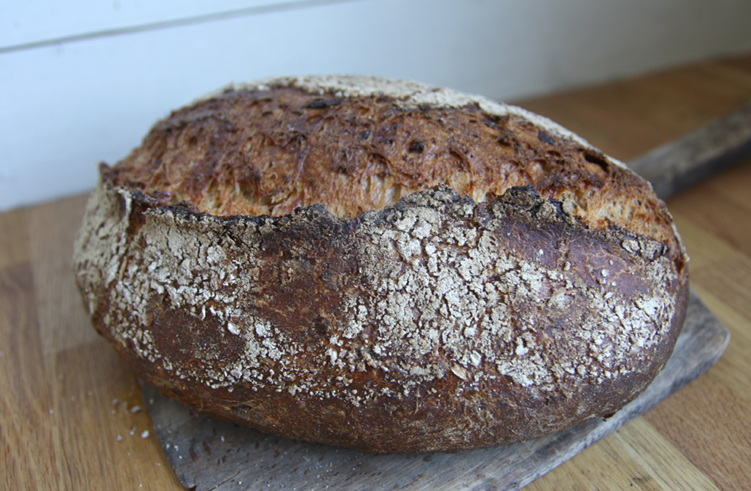 Värm ugnen till 275°. Vänd upp bröden på en brödspade eller liknande. Sätt in dem i ugnen samtidigt som du sprutar in vatten. Sänk till 225° och baka i 30–35 minuter. Öppna luckan några gånger mot slutet av baktiden för att bygga upp skorpan.