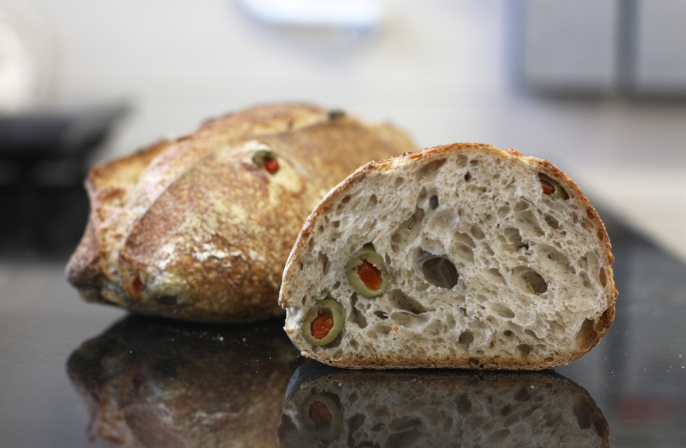 Det är så kallt nu. Gamla hus har sin charm, men just nu känns det som om det blåser iskalla vindar rakt in i huset. Jag skottar snö varje dag och fryser hela tiden, det hjälper inte ens att vara i bageriet. Men det finns saker som värmer, kanske är det just därför som det blev ett helgbröd med oliver och rosmarin. Det här tar oss långt söderut på något sätt.