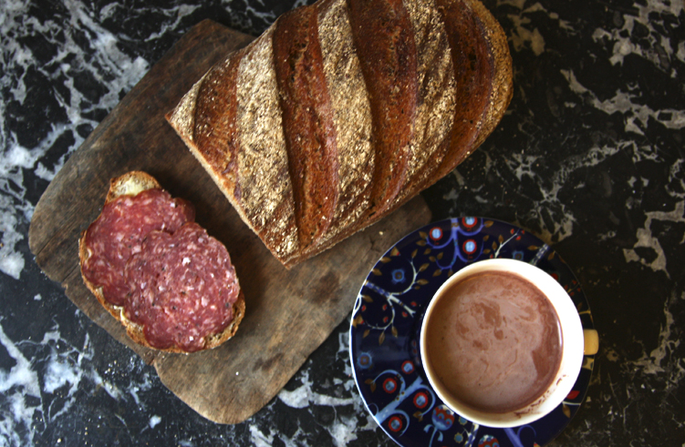 Men vi kan iallafall trösta oss med det bästa sportlovsmellanmålet man kan tänka sig – sirapslimpa med prickig korv och varm choklad. Givetvis i Solhagas version med en riktig kvalitetslimpa, Tokajsalami från Gudmundsgården och varm choklad på Valrhona kakao.