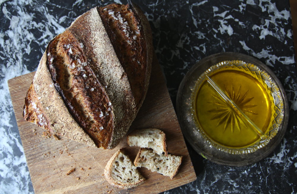 Hemma igen från Rhodos. Och lika härligt som det var att äta våfflor med nutella och mousserande vin till frukost en hel vecka, lika härligt var det att komma hem till riktigt bröd. Låt mig presentera det perfekta fredagsmyset. Häromveckan kom min vän Lars från Torekov förbi bageriet med två lådor helt färskpressad rapsolja från Bjäre. Helt fantastisk till ett av mina nya favoritbröd, kryddat med grovmalen svartpeppar och flingsalt och med lite tuggmotstånd från hela rågkärnor. Bästa dopparbrödet!