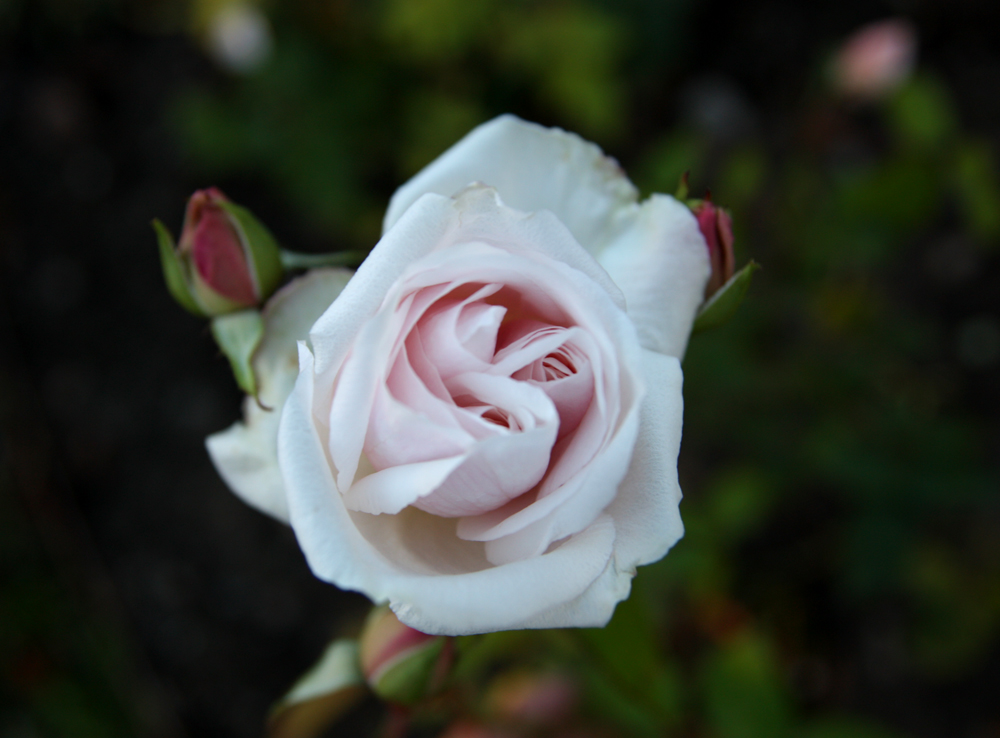 Vid staketet mot grannen har jag satt några Stanwell Perpetual, som blev årets ros 2011. En buskros uppkallad efter en engelsk by, där den upptäcktes på 1800-talet. Blommar med små vita blommor första gången i juni, och en gång till på hösten.
