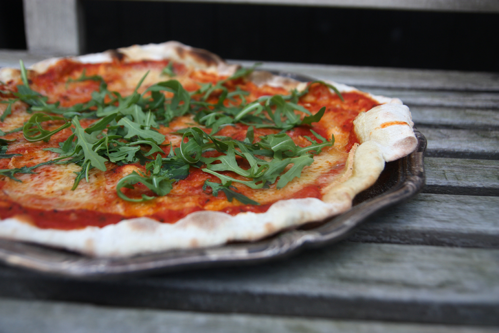 Värmen är viktig – sätt ugnen på maxvärme och låt en plåt eller baksten vara inne. Lägg sedan pizzan på en bricka med bakplåtspapper, lägg på topping och skjutsa in både pizza och papper direkt på stenen eller plåten. Då får pizzan den direkta värme som behövs för att den ska bli krispig och välgräddad.