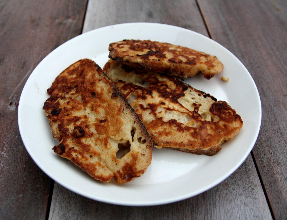 Stek i rikliga mängder smör och servera med strösocker, kanel, sylt och grädde. Söndagslyx och ett fint sätt att ta tillvara gammalt bröd. Myra tycker absolut att vi måste servera detta på Borgmästargården, och vet ni vad? Jag tror att hon tänker helt rätt. Så får det bli.
