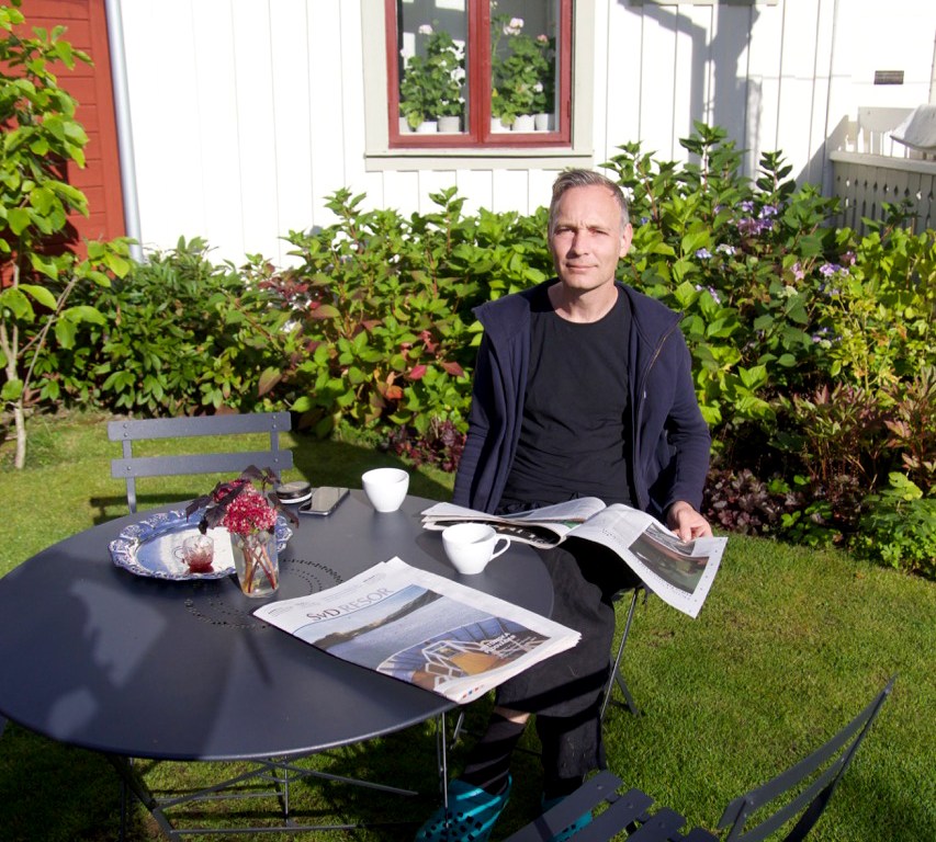 Ante har redan hämtat tidningen och lagt beslag på vårt favoritbord i hörnet.