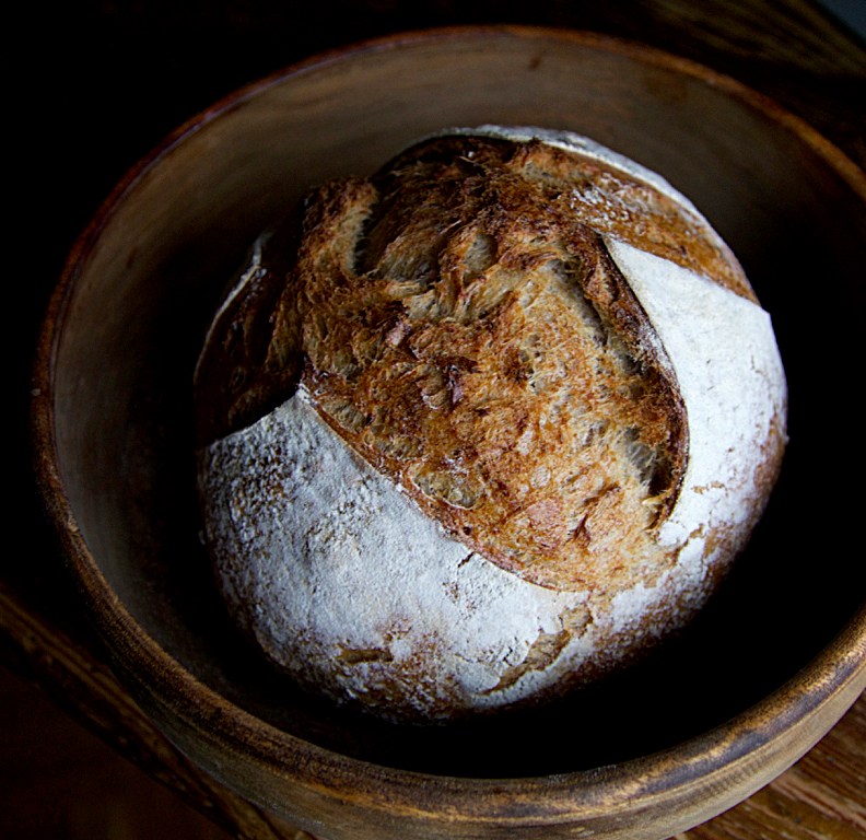 Låt jäsa i rumstemperatur tills de är klara, eller i kyl över natten. Värm ugnen till 275°C med plåt eller baksten inne. Vänd upp bröden på en brödspade eller liknande. Stryk ut vetemjöl jämnt över hela brödet och snitta. Sätt in bröden på bakstenen eller plåten samtidigt som du sprutar in vatten. Sänk till 225° och baka av i 30–35 minuter, tills skorpan fått fin färg.
