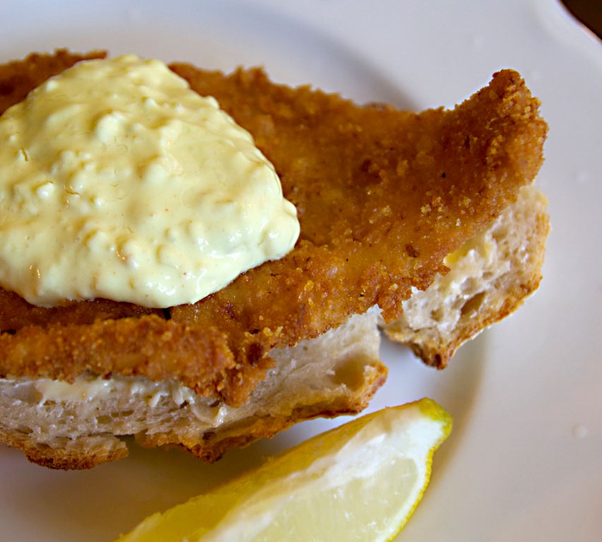 Perfekt knaprig och gyllenbrun på rågbröd eller levain med smör, toppat med remoulade, svartpeppar och citron. Det var den absolut bästa fiskefilet jag har ätit i hela mitt liv. Och jag har ätit många!