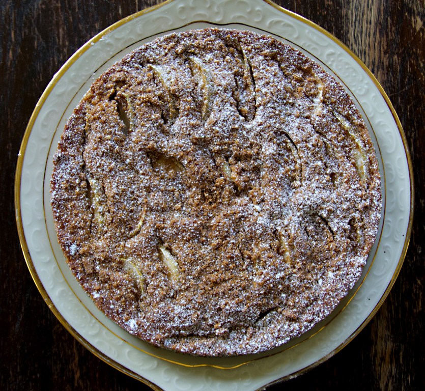 Jag kommer att baka den här äppelkakan, som min granne Hiltrud bjöd på när jag fick vara med på ett möte med Slöinge Hembygdsförening. (Vi pratade om Slöingerundan och hur man skulle kunna utveckla den med alla historiska fakta om Slöinge som hembygdsföreningen vill bevara för eftervärlden. Hur fint är inte det?)