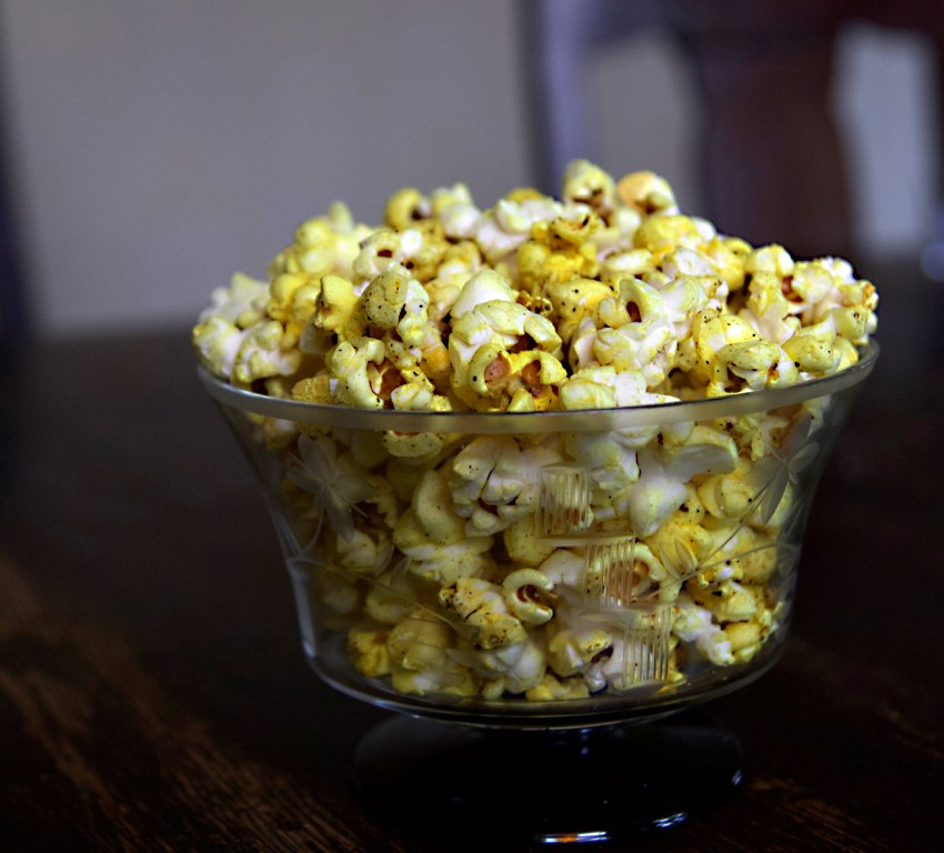Värm kokosolja i en kastrull så att det täcker botten. När oljan börjar bli varm, tillsätt kryddorna och skaka på kastrullen så att de blandas med oljan. Häll i popcornmajs, lägg på lock och skaka lite lätt på kastrullen medan det poppar. Salta efteråt om det behövs.