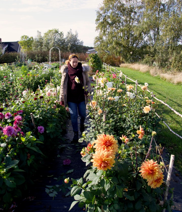 Dahlior i många färger och former som Josefin samlat på sig från olika håll.