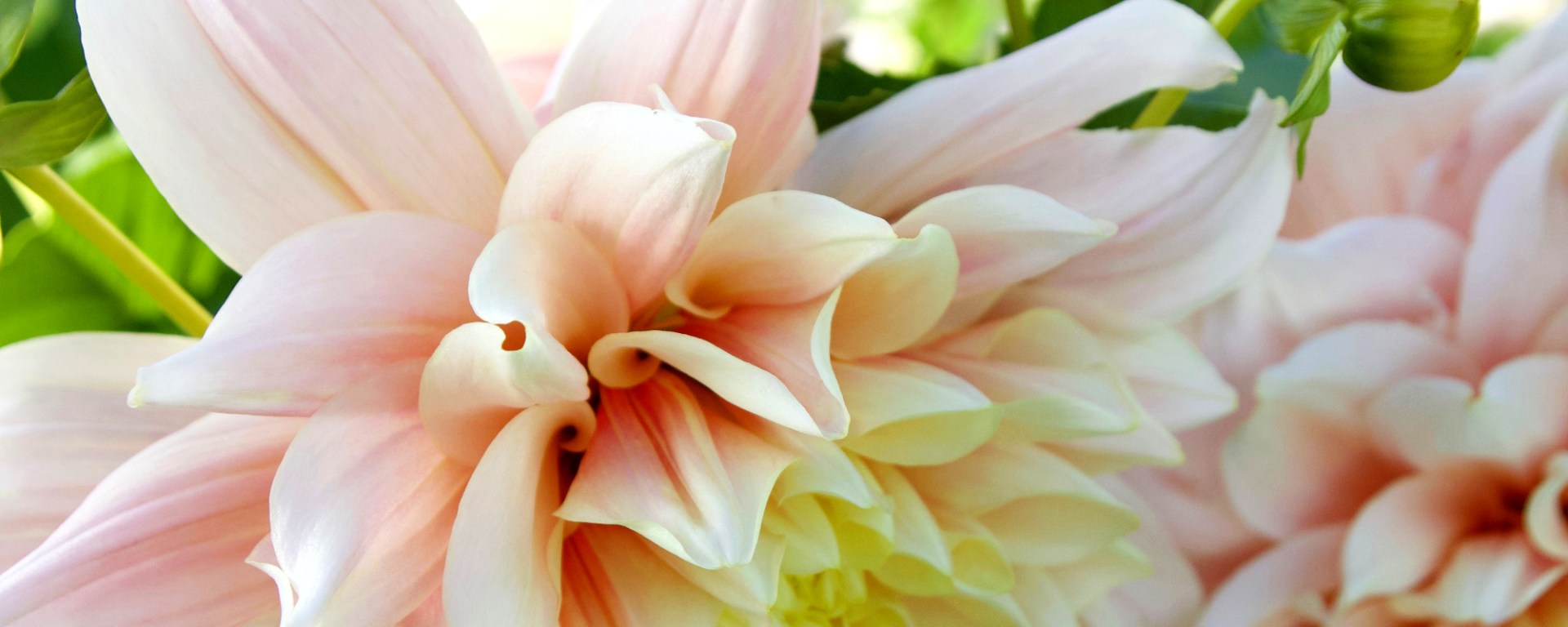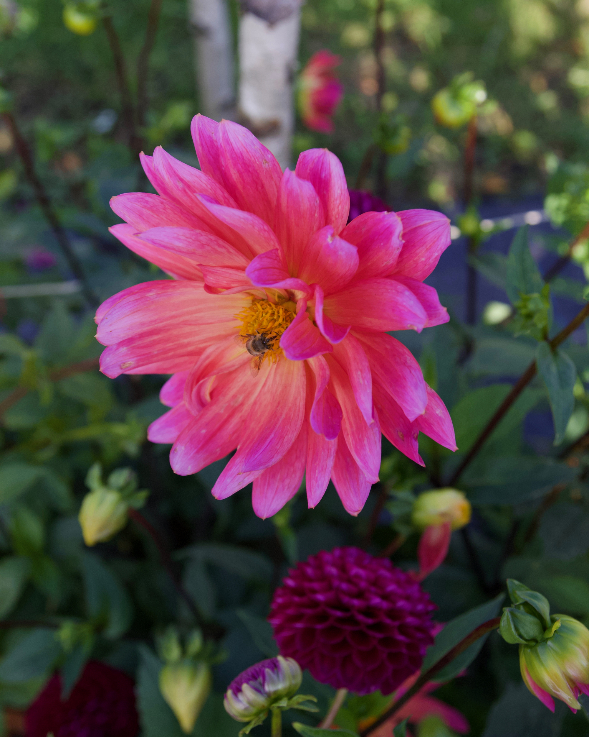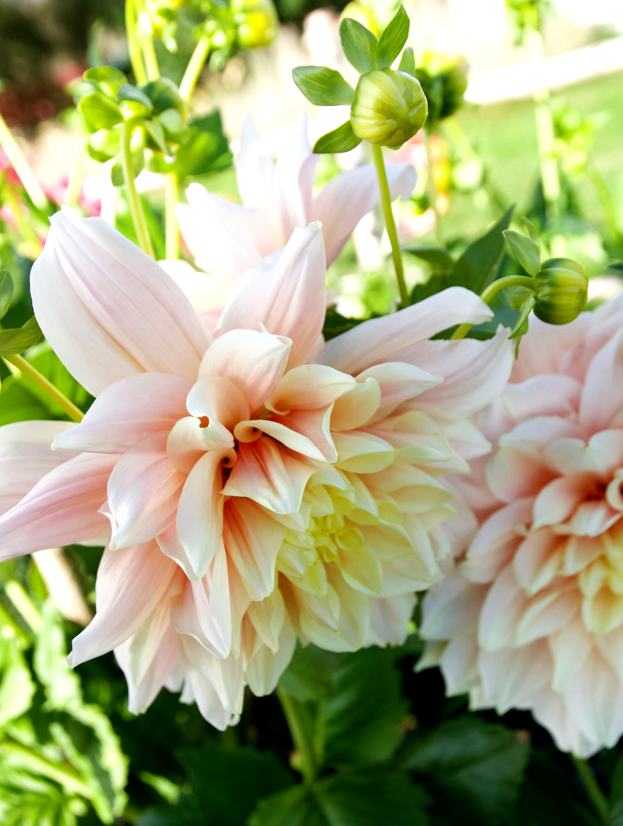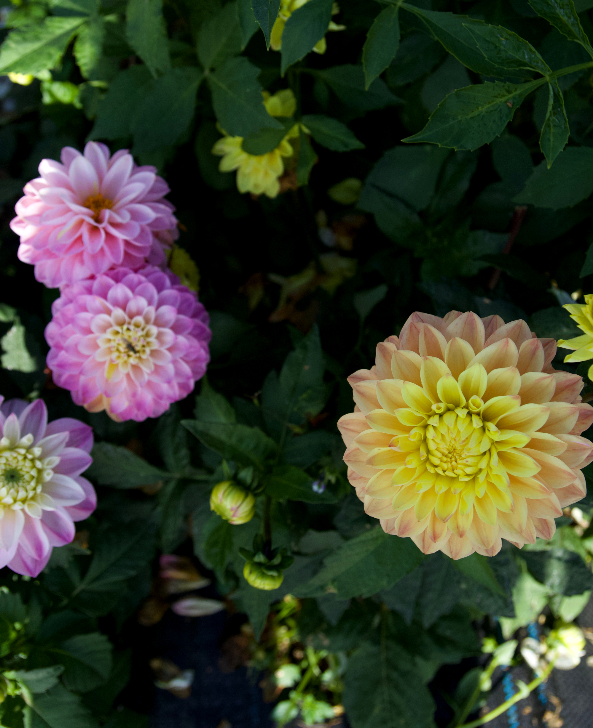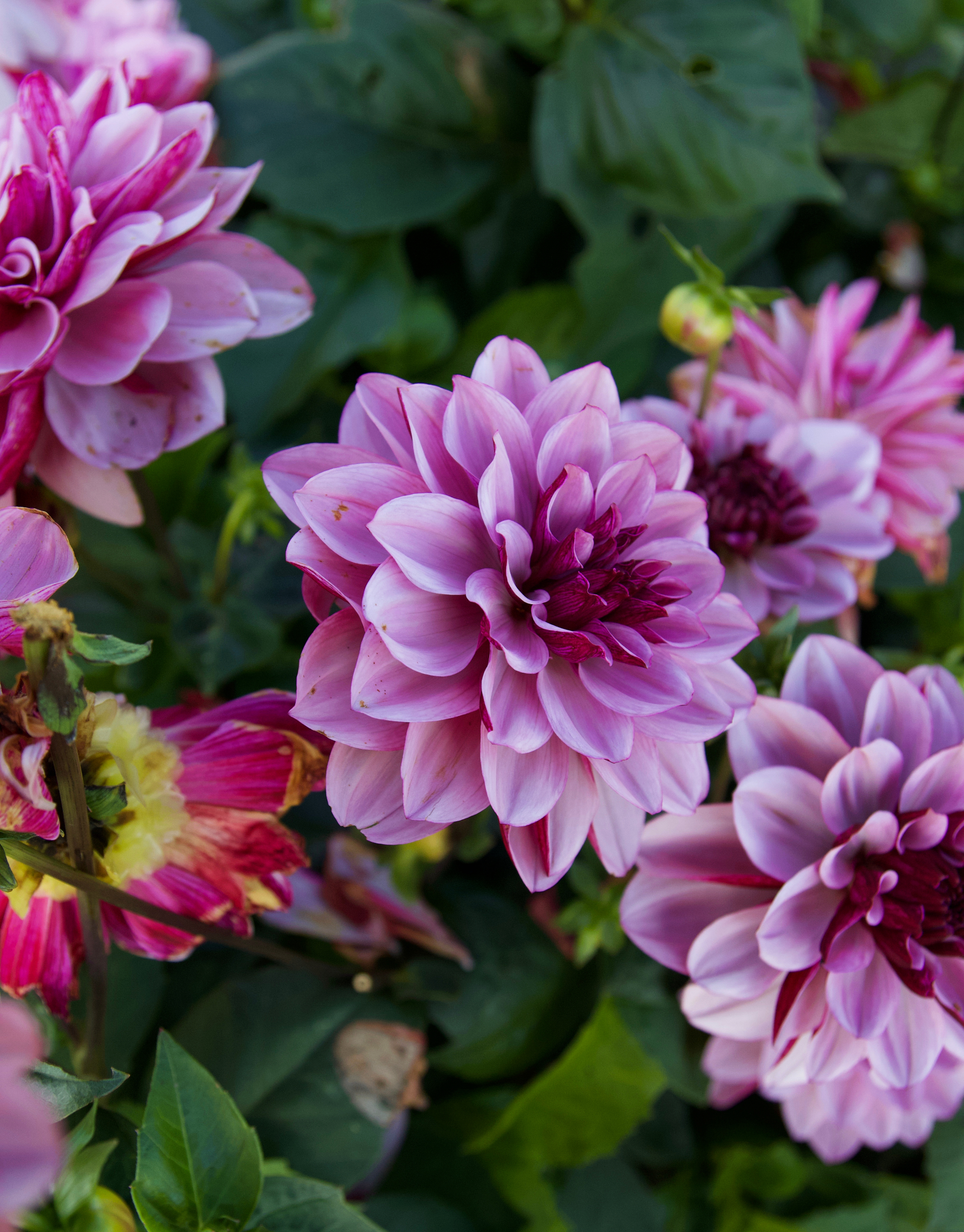 Dahlior i många färger och former som Josefin samlat på sig från olika håll.