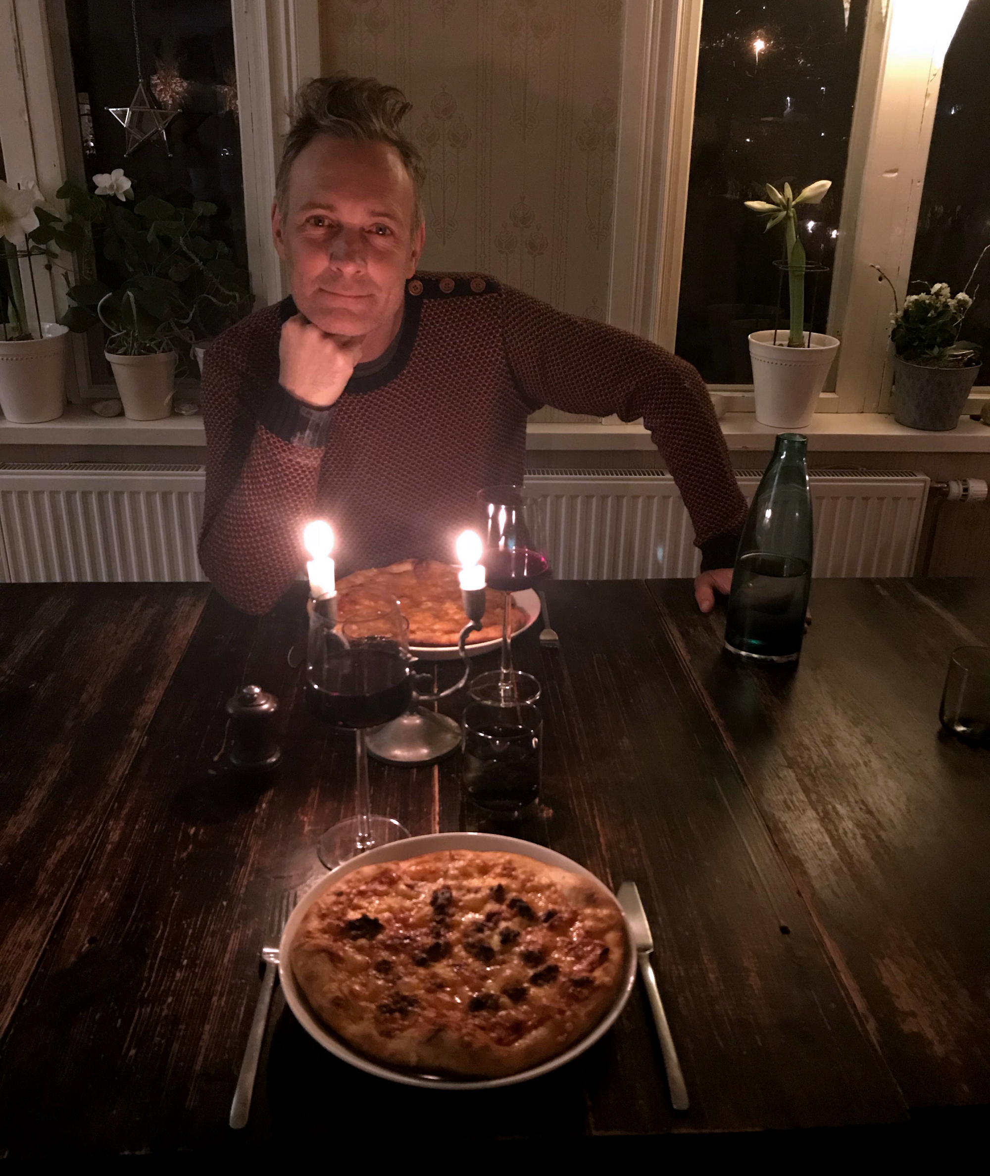 Nyårsdagen firar Ante och jag alltid vår årsdag med pizza och rödvin. Denna gång firade vi 23 år tillsammans. Jag lägger ut bilden även om han inte är nöjd med sin frisyr just här. För mig är han alltid fin.