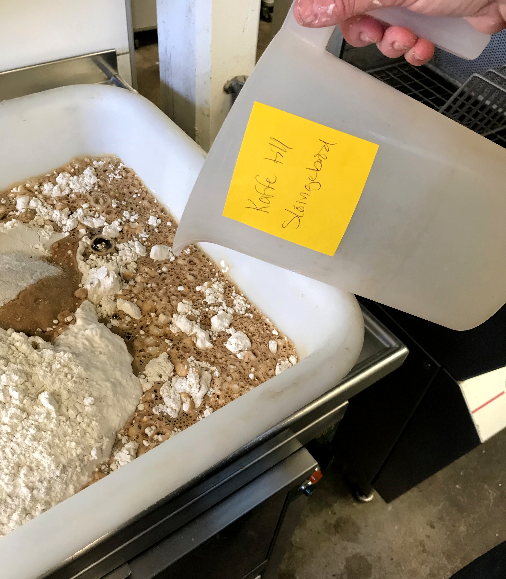 Numera finns rutiner i bageriet för att ta vara på allt från brödskalkar till browniekanter. Om det till exempel finns bryggkaffe kvar vid stängning häller vi upp det i en kanna, för att det nästa dag ska användas som degvätska i Slöingebrödet eller cappuccinobullen.