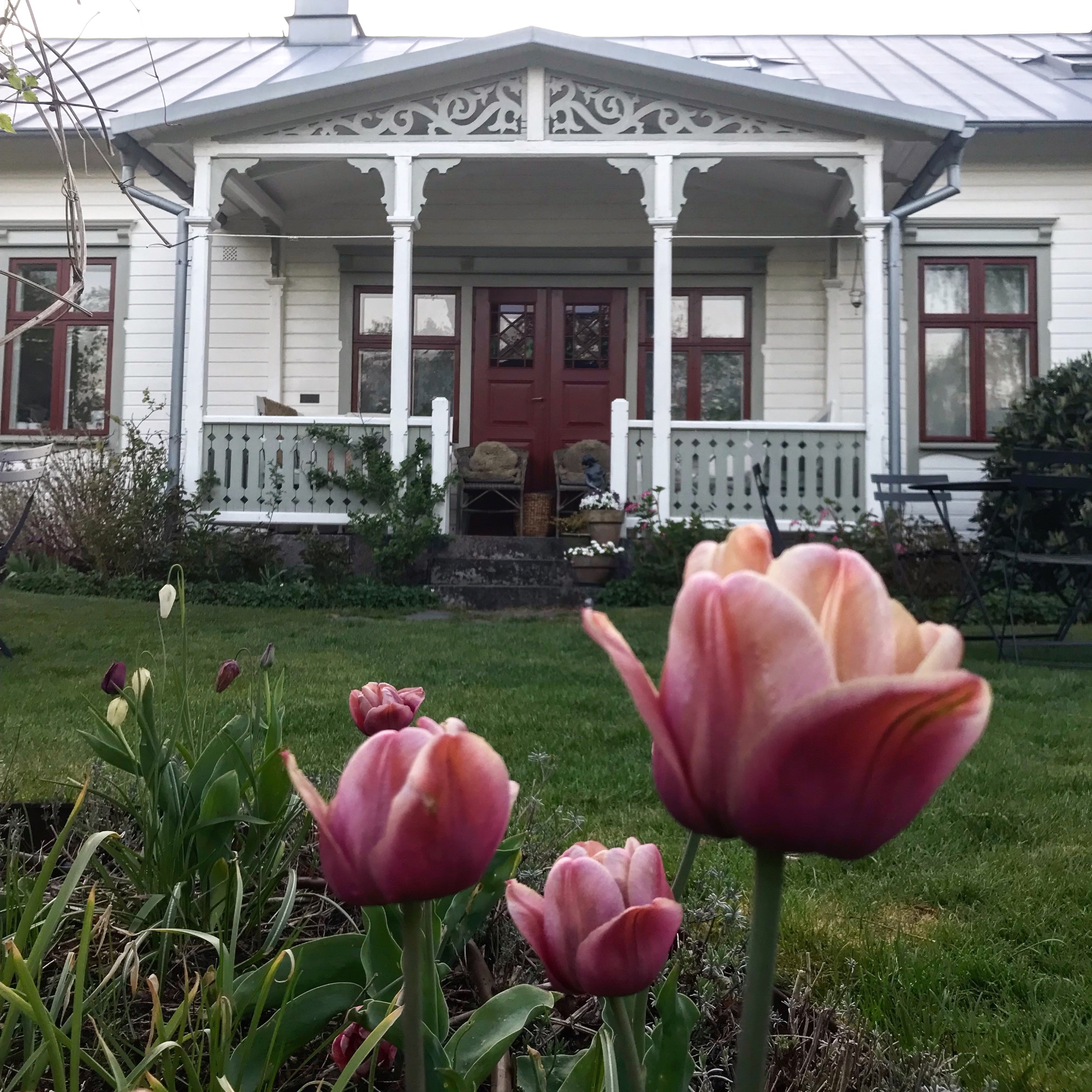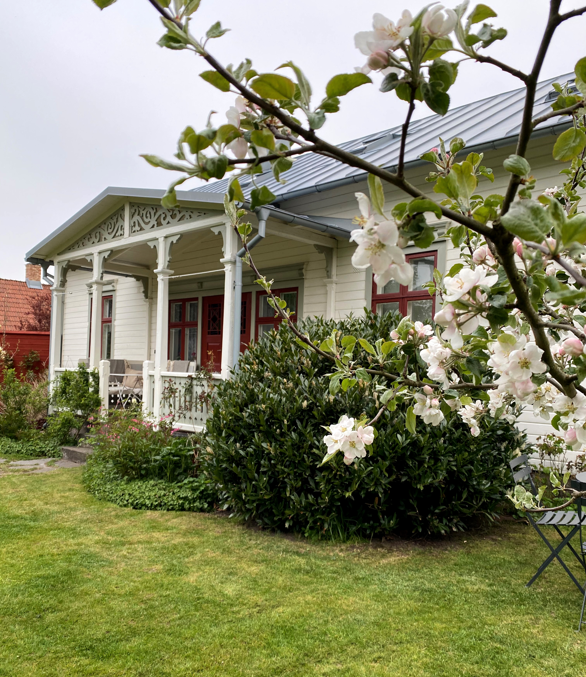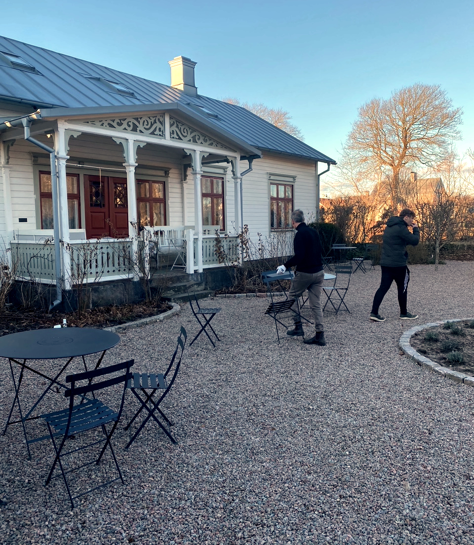 Men nu är vintervilan över, så härligt det kändes att få ta fram utemöblerna igår och öppna vår nya uteservering för säsongen. Det är väldigt viktigt att stolarna står i rät vinkel mot fasaden, tycker Ante som jobbar med grafisk form och har blick för olika slags linjer. Vi får väl se hur det blir med den saken när gästerna tar denna plats i besittning. Som jag längtar efter att få se allting blomma, snart är vi där!