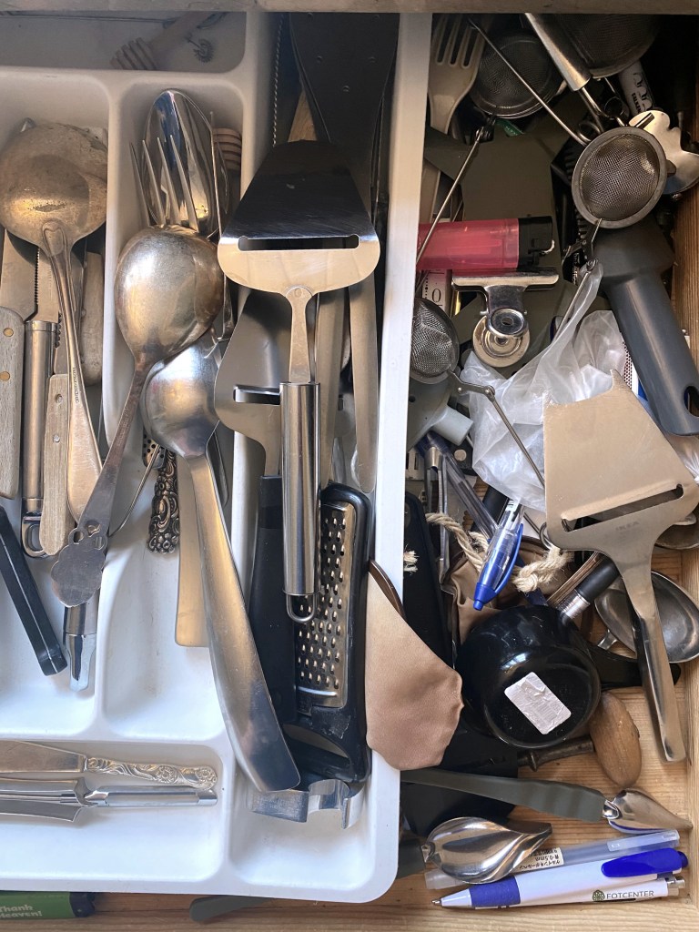 När det blir stökigt i lådor och skåp är det jag som plockar ur, gör rent och organiserar. Men som ni ser har inget av detta hänt, för jag har varit fullt upptagen med att projektleda bygget och jobba i bageriet. Resten av tiden försöker jag att inte överanstränga min hand som fortfarande är på rehab efter frakturen för tre månader sedan.