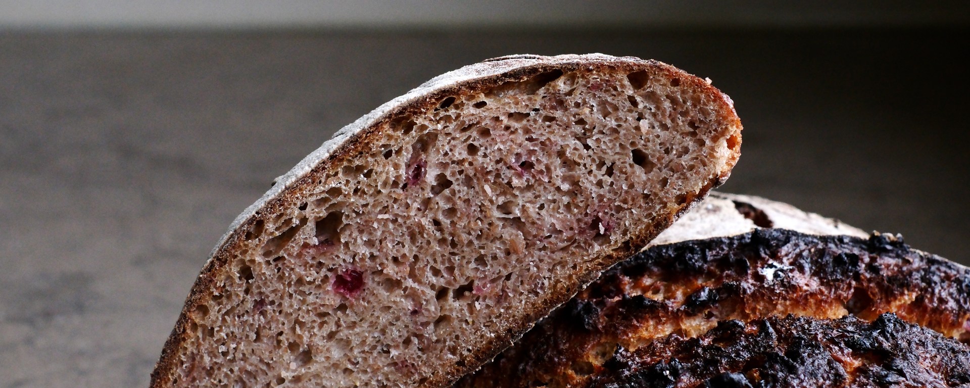 Sätt in bröden på sten eller plåt samtidigt som du sprutar in vatten. Sänk till 225°C och baka av i 30–35 minuter, eller tills du är nöjd med färgen. Tänk på att sötade bröd tar färg snabbare, så baka hellre längre på något lägre temperatur än 225°C om du vill undvika för mycket svärta.