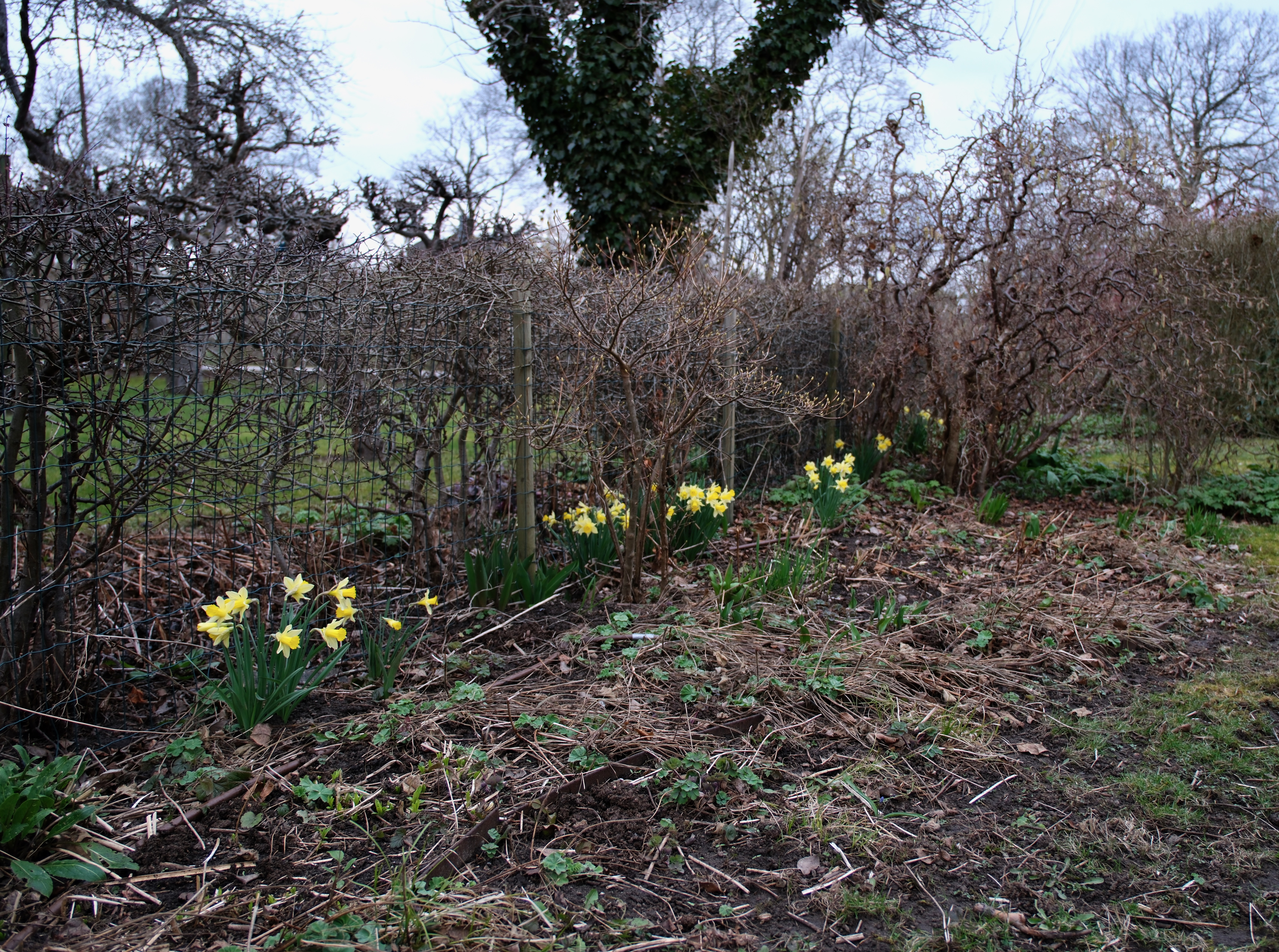 Det ser allt lite skräpigt ut även om det är storstädat, tur då att påskliljorna tar allt fokus. Tänk att de slog ut lagom till påsk, det är inte varje år det tajmar så bra.