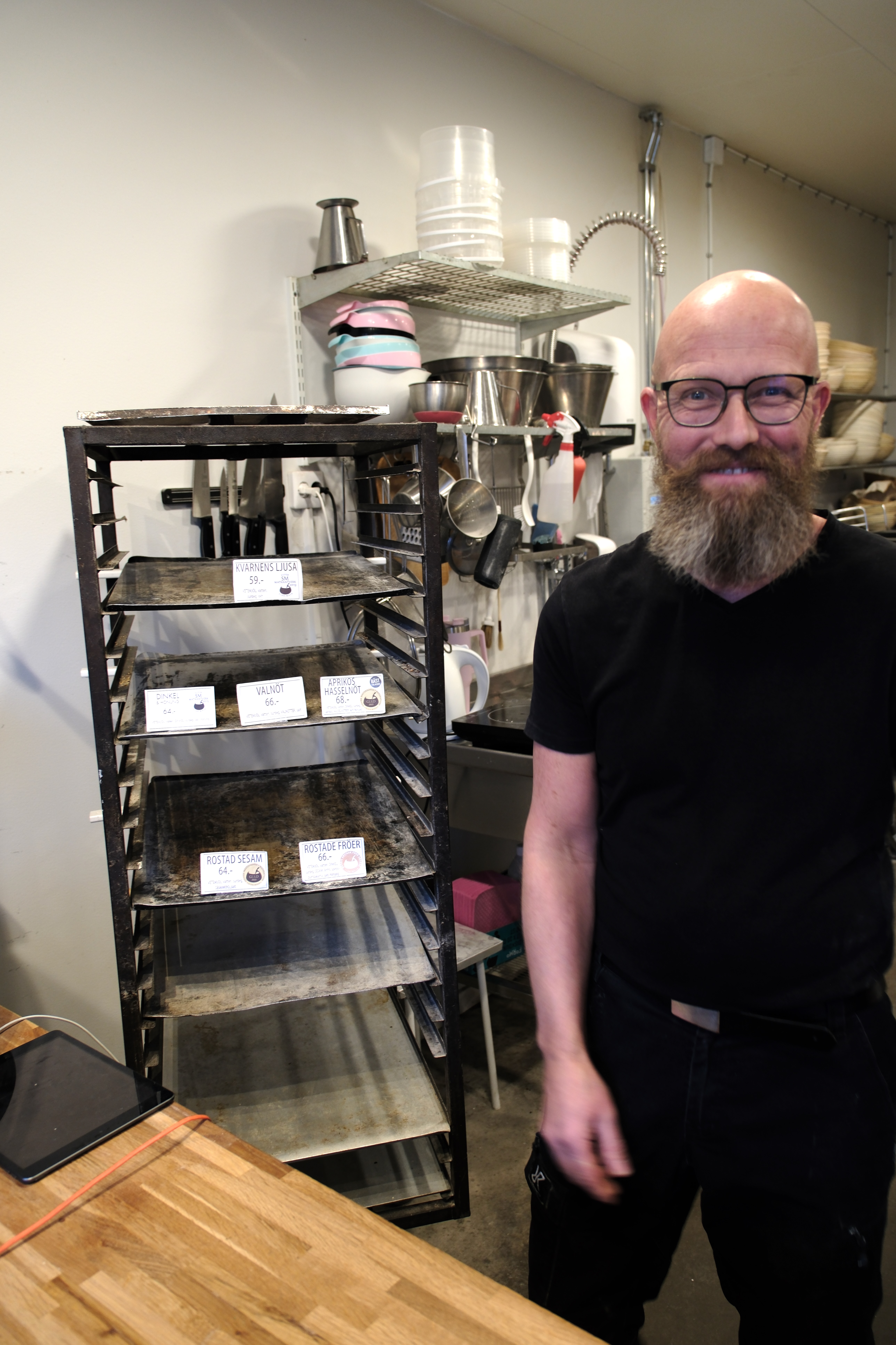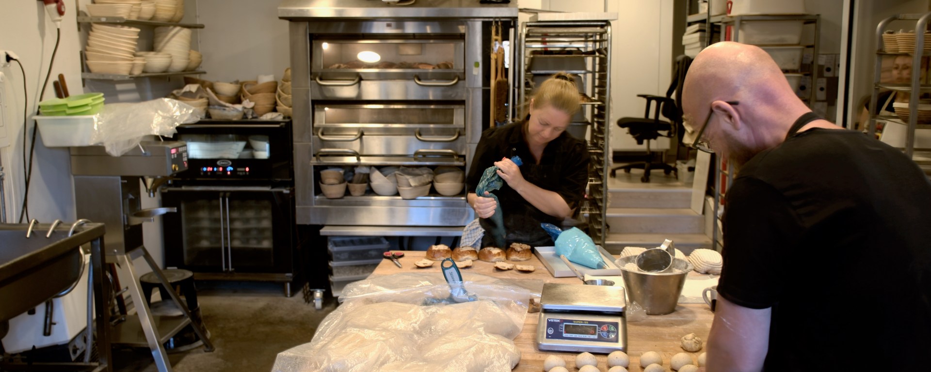 Inne i bageriet håller Oskar på att styra upp det sista för dagen, det är fredag eftermiddag och brödhyllan gapar som sig bör tom.