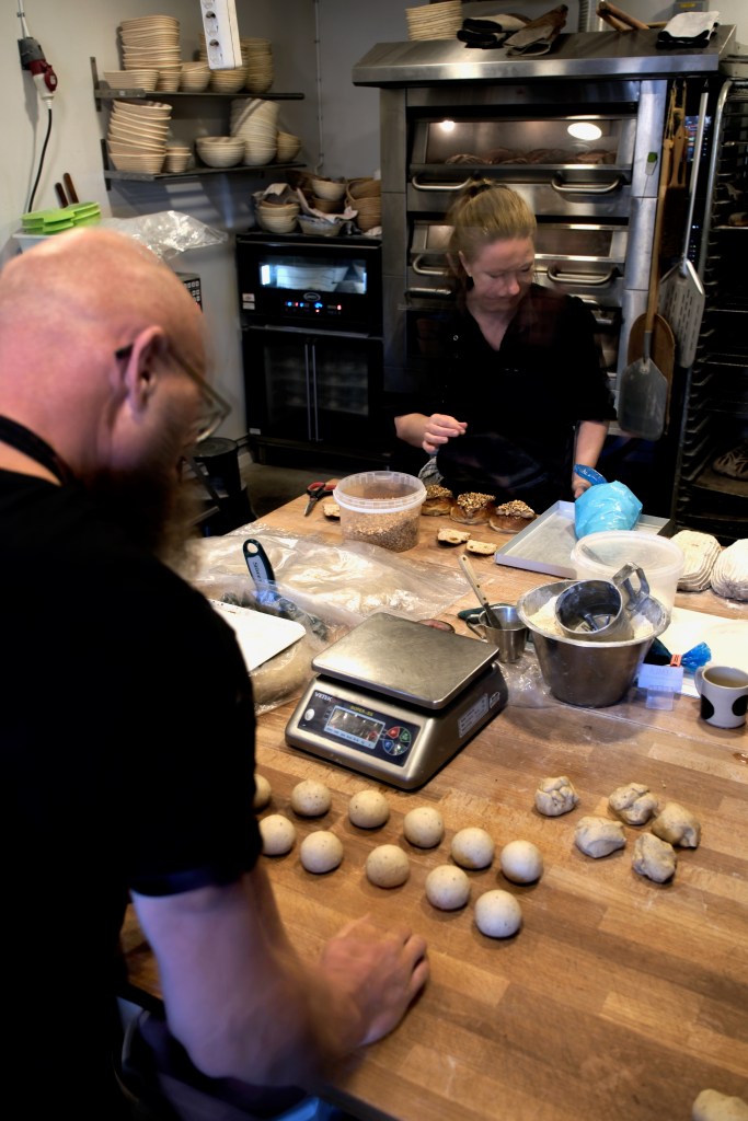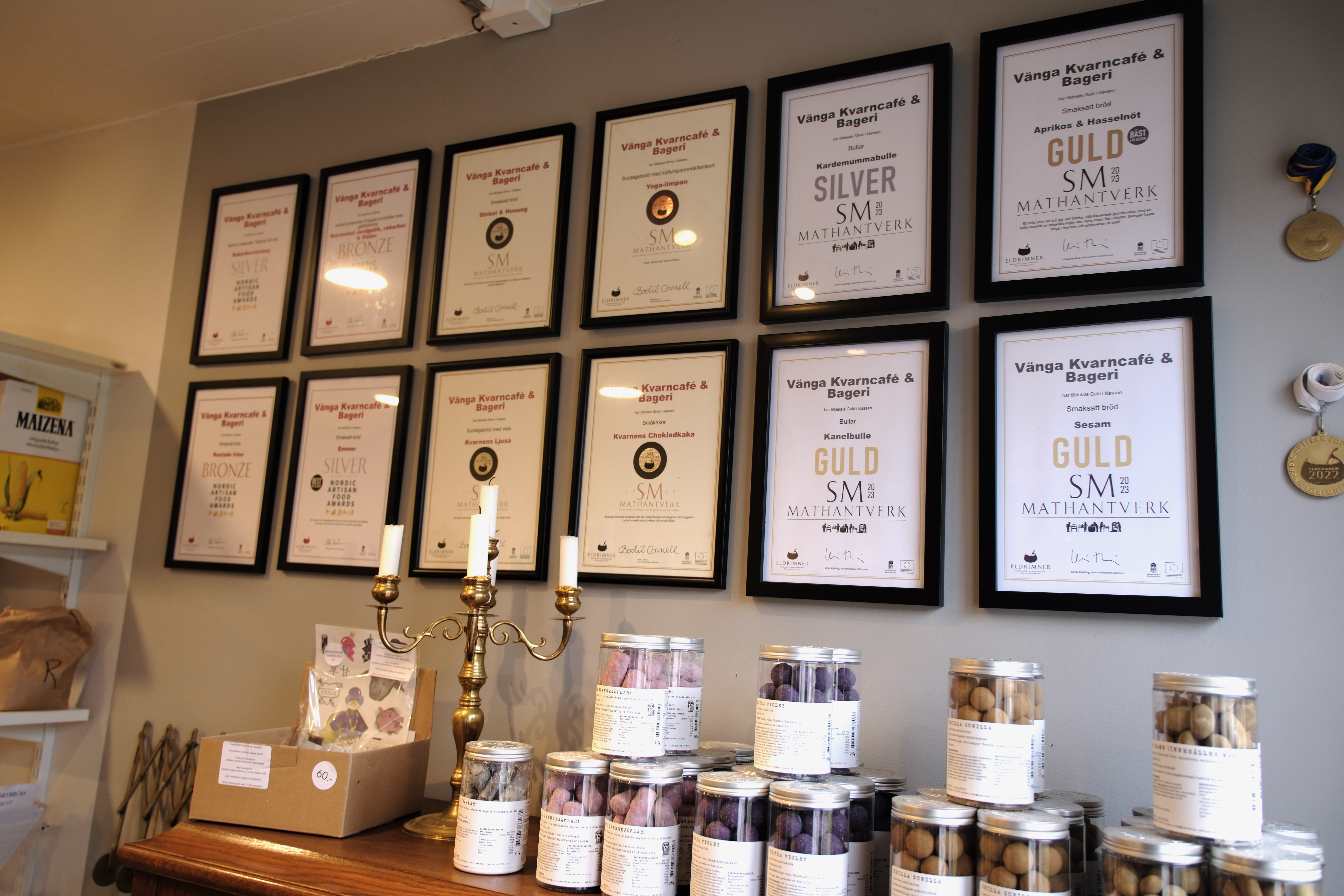 Dags för fika, och vi slår oss ner vid den gamla frönötaren med prisbelönt kanelbulle och supergoda biskvier. Och så pratar vi resten av vistelsen i princip oavbrutet om våra erfarenheter av att driva bageri. Vi har alla gått igenom den där första rosenskimrande fasen när man går på ren entusiasm och energi. Förr eller senare behöver företagandet bli mer stabilt och hållbart för att man också ska kunna åldras med företagandet. När jag startade Solhaga var jag 36, nu är jag 51, och det är en enorm skillnad i vad kroppen tål, särskilt efter behandlingar jag gått igenom. Malin och Oskar har en liknande situation, där det är dags att utvärdera och omgruppera.