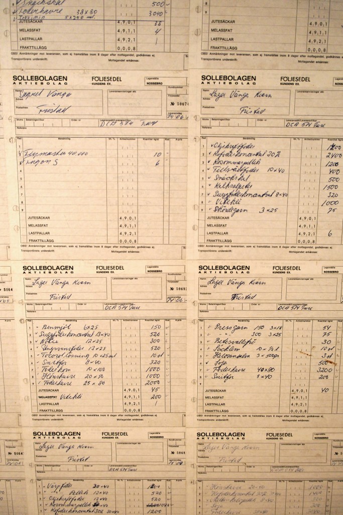 Följesedlar också. En hel vägg är tapetserad med dokument från 1974.