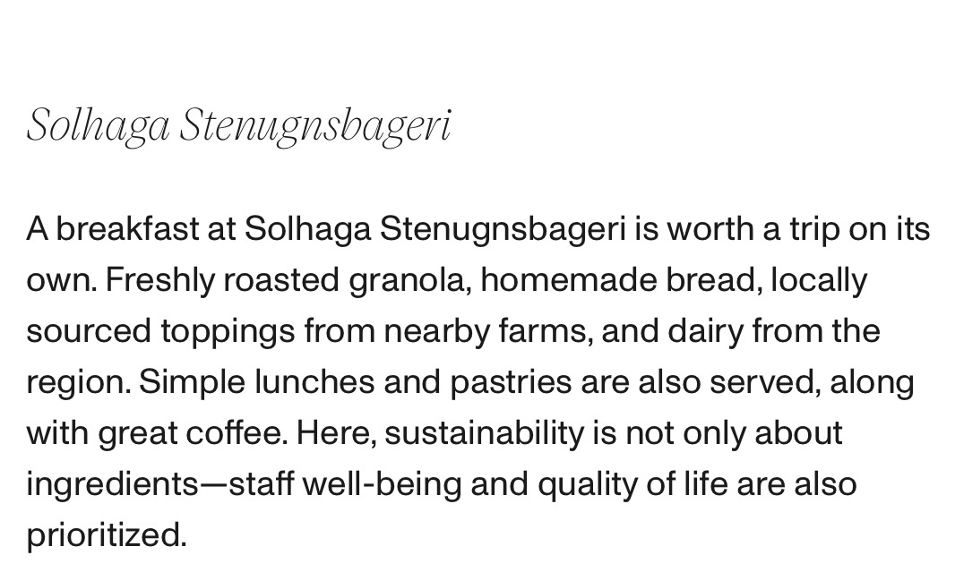 Så glada vi blev över de sista raderna i texten om Solhaga, att vår arbete för den mänskliga hållbarheten uppmärksammas. Det har länge varit standard inom bageri och restaurang att slita tills man går i däck, ja det är nästan en tävling om vem som gjort flest timmar på golvet och hunnit mest.