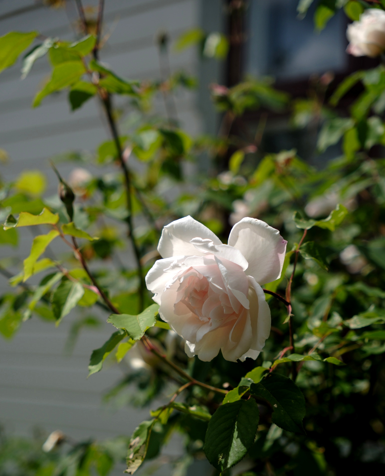 Rosorna är ovanligt många och friska i år, här har vi Madame Alfred Carriere, skapad av rosföräldare Joseph Schwartz i Frankrike 1879. Enligt utsago var den tillägnad hustrun till en stor rosälskare från provinsen Dauphiné.