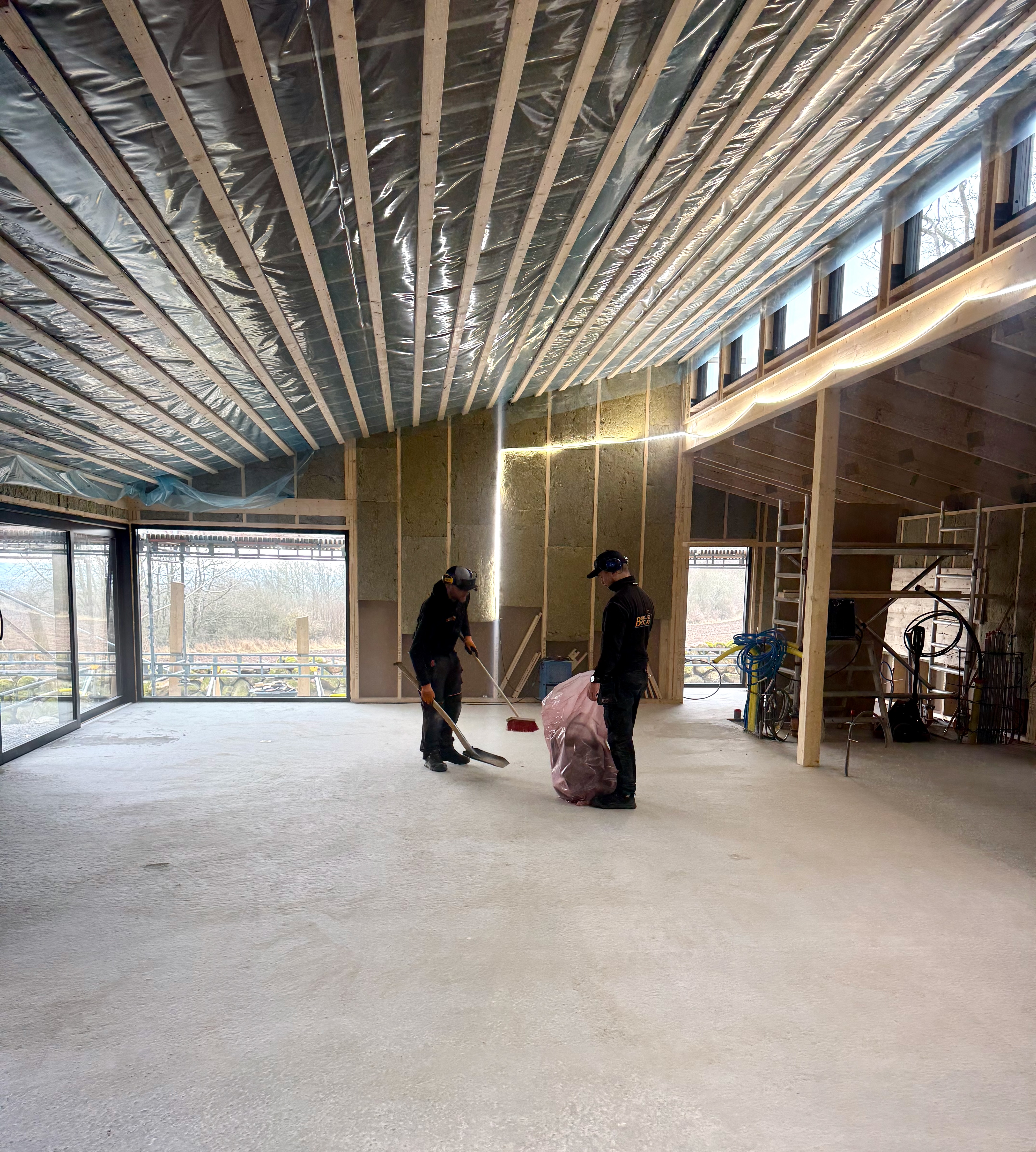 Bygget. Vi bygger ett fritidshus till, bredvid det som vi byggde 2020. Tanken är att använda det som ateljé och gästhus, vi har saknat utrymme för att kunna bjuda in till kalas och övernattning. Tänk också att ha en replokal där våra instrument och musikprylar får plats, det kommer bli fantastiskt. Själva bygget är liksom bageriet självgående rent praktiskt, men det är stora beslut och en budget att försöka hålla styr på. Nästa vecka ska betonggolvet slipas. Till sommaren ska det vara klart.