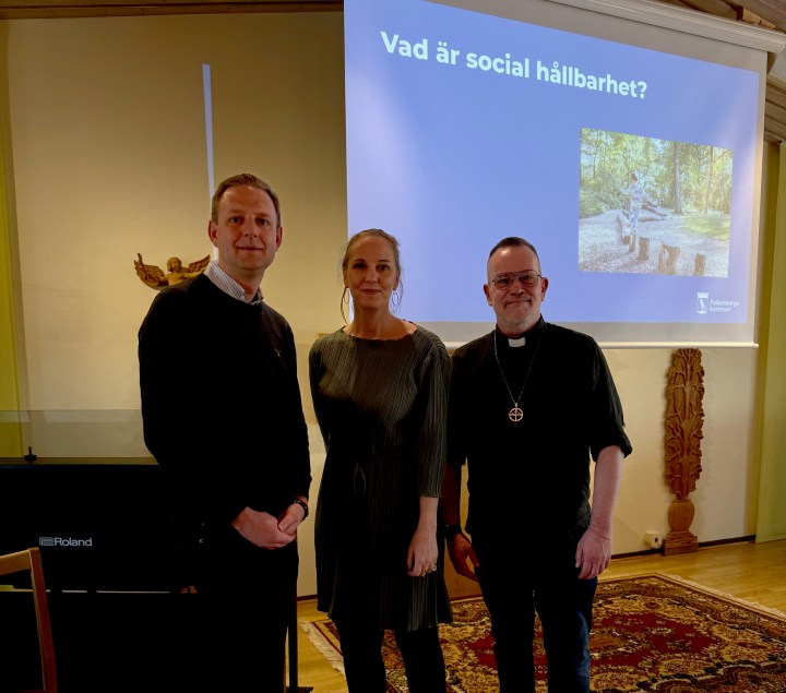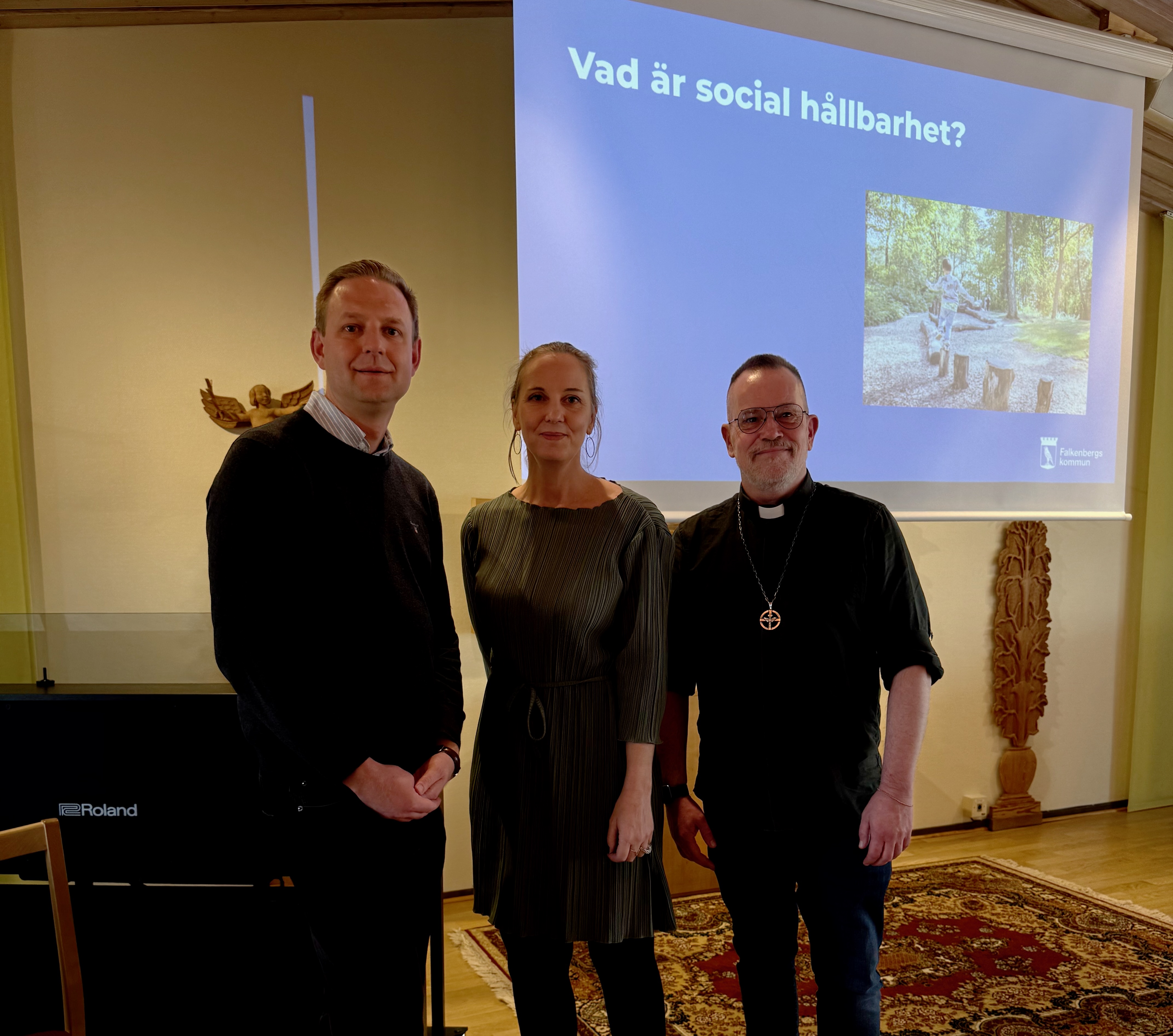 …på Ingelands näringslivsdag med tema social hållbarhet i arbetslivet. Här tillsammans med kommunstyrelsens ordförande i Falkenberg Per Svensson, och diakon Per Frantzén i Harplinge.