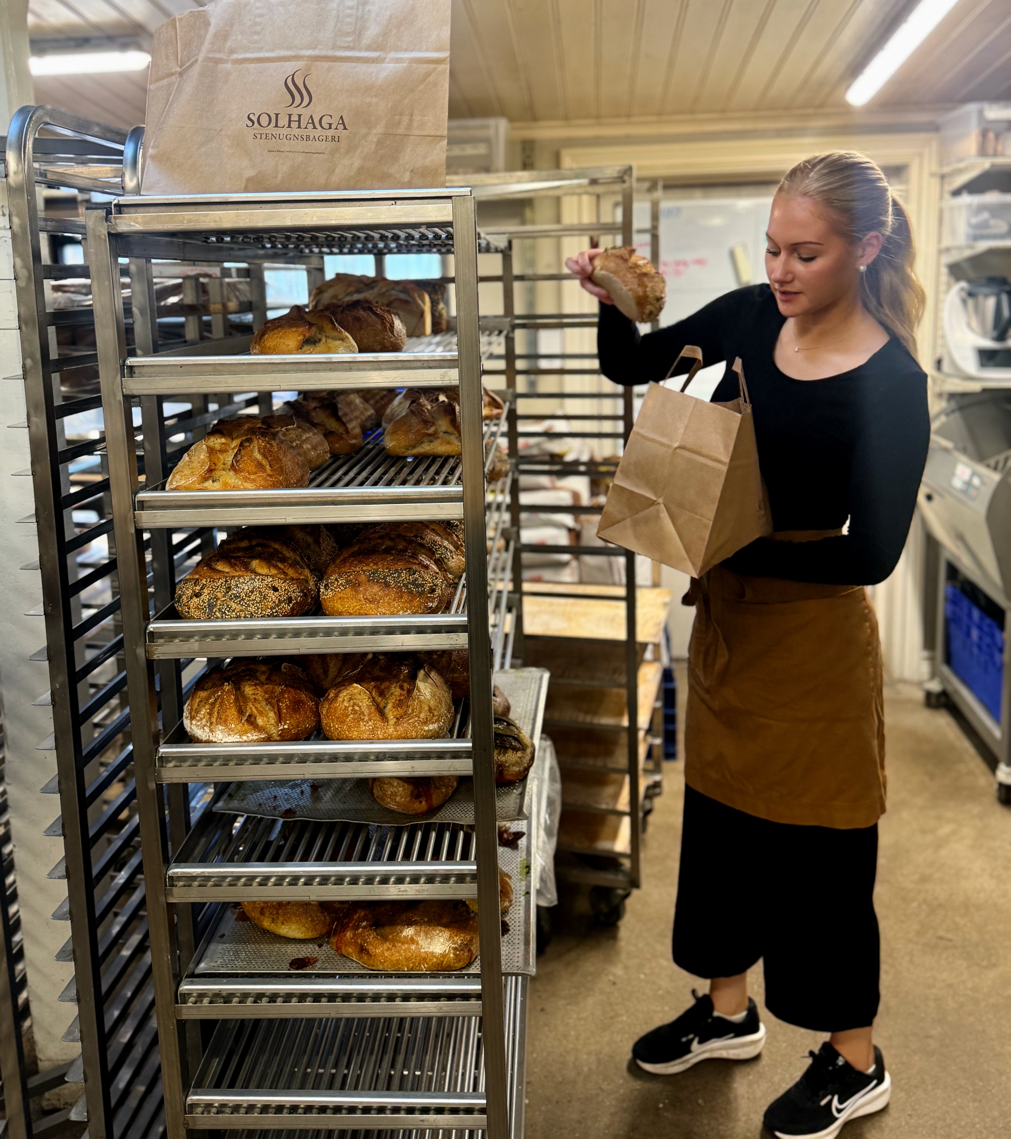 Dagarna rullar på här på Solhaga. Senaste veckan har vi laddat för påsk och som vanligt blir det ett bröd med vårtema. Vår bagerichef Olivia valde nässlor och gräslök som årets smaksättning, och Kvibille Cheddar har numera blivit ett självklart inslag i påskbrödet. I veckan hade vi det framme för provsmakning i butiken, och fick översvallande recensioner.