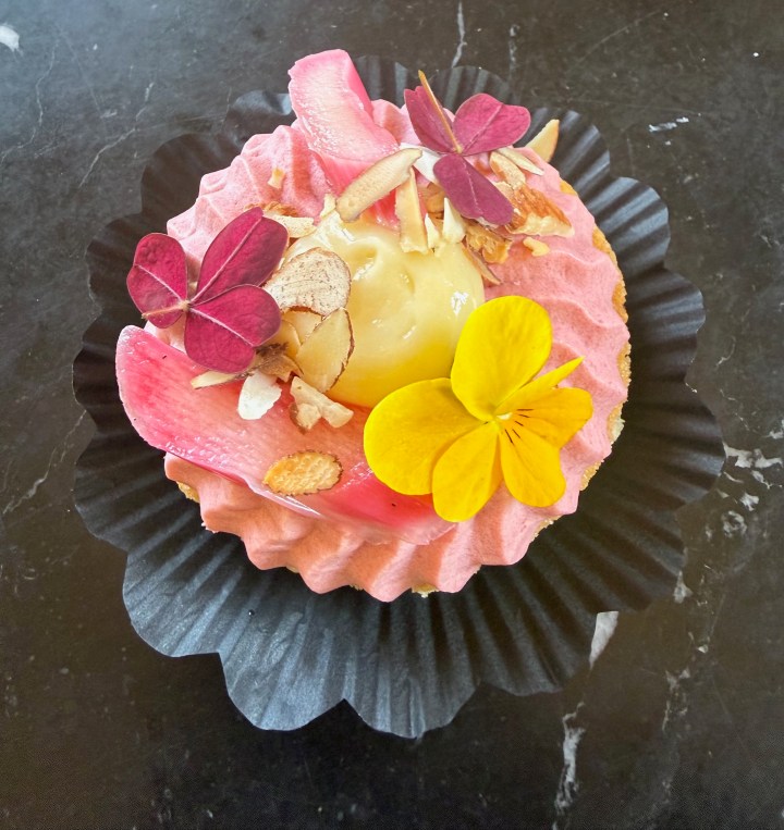 Den raraste lilla påskbakelse finns också i butiken. Med mandel, hallon och rabarber.