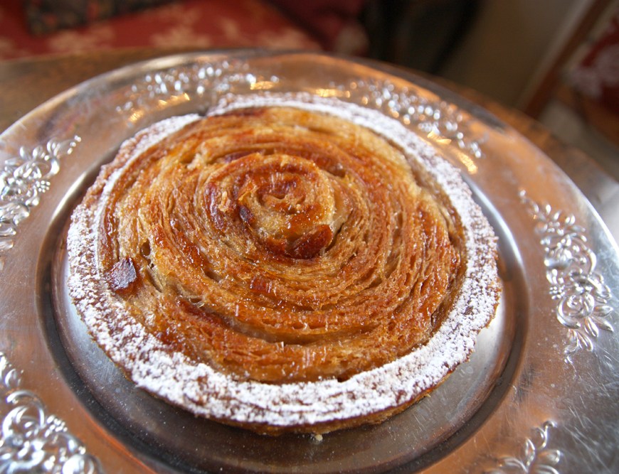 I dagarna har Gustav varit här och lärt oss baka Kouigh Aman, ett bakverk som bygger på att man kavlar in smör och socker i en enkel vit deg (baguettedeg går också bra att använda). Resultatet blir fantastiskt gott, med saftighet från smöret och krisp från det karamelliserade sockret. Fortsätt läsa Gustav lär oss Kouigh Aman